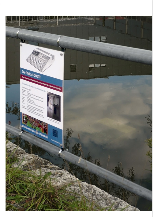 On a crisp September afternoon the artwork was installed in a catchment pond, down at a display depth of around half a meter. Formerly owned by the firm Zellweger, the pond had once been the envy of the many other factories that were located and operating in the area. The Zellweger pond was the largest in the region, draining vast quantities of water to power its factory's machines, and by doing so it left very little water for any businesses located further downstream. Yet despite these internal troubles, for many years Uster was known as a city of success and prosperity, where a once quiet town of some 33 000 residents could lay claim to being the most heavily industrialised area in Europe. Yet water-power, along with the city's claim on industrial dominance, has long-since evaporated and vanished.